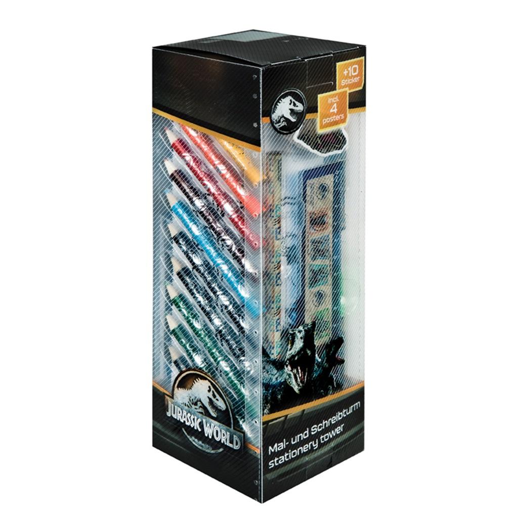 Zestaw Przyborów Szkolnych Z Kolorowankami 35 el., Jurassic World Zestaw przyborów szkolnych - 35 elementów, stanowiących podstawowe wyposażenie każdego malucha. Starannie wykonany, złożony z 4 arkuszy do kolorowania, zestawu 10 naklejek,10 kredek, 6 markerów, ołówka, temperówki, gumki, linijki i notesika. Inspiracją jest tu największy filmowy hit ostatnich lat Jurassic World. Dzięki uroczym bohaterom szkoła może być fajna. Nieważne czy jesteś pierwszoklasistą czy piątoklasistą - potrzebujesz przyborów do szkolnej przygody. Bogaty zestaw /35 elementów/ z przyborami szkolnymi i kolorowankami, bardzo starannie wykonany. Zawiera: Zestaw 4 kolorowanek. Zestaw naklejek - 10 szt. Mały notesik. 6 markerów w 6 kolorach. 10 różnokolorowych kredek. Linijkę, ołówek i temperówkę i gumkę. Zestaw zapakowany we wspaniałą wieżę, stanowi doskonały prezent. Wymiary opakowania: 8 cm x 8 cm x 24 cm. Uwaga: produkt przeznaczony dla dzieci powyżej 3 lat. Ryzyko zakrztuszenia.