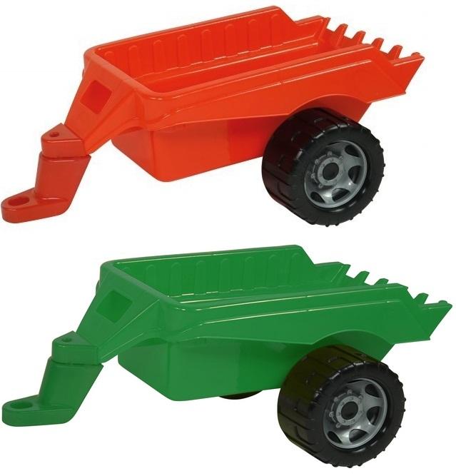 Duża przyczepa do pojazdów, jednoosiowa. Przyczepę można łączyć z innymi autami z serii, np. ładowarkami, koparkami. Wykonana z wysokiej jakości plastiku. Wymiary: długość - 47 cm wysokość - 18 cm głębokość - 12 cm Zabawka dla dzieci od lat 3.