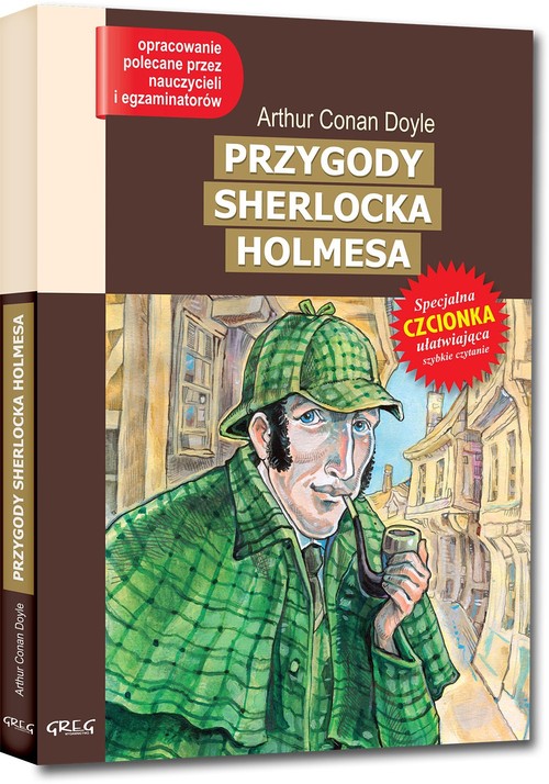 Przygody Sherlocka Holmesa zawierają wybór dwunastu opowiadań, zgodny z klasycznymi wydaniami. Są to najbardziej znane opowiadania, których dobór gwarantuje znalezienie poszukiwanego tekstu. Łącznie tworzą zestaw kanoniczny, uważany powszechnie za najlepszy i najpełniej prezentujący postać genialnego detektywa.Przygody Sherlocka Holmesa zostały uzupełnione o szczegółowe i przygotowane z najwyższą starannością merytoryczną opracowanie. Powstało ono we współpracy z doświadczonymi polonistami, co zapewnia jego przydatność w szkolnej praktyce. Opracowanie zawiera informacje najpotrzebniejsze w szkole, m.in. dokładne charakterystyki bohaterów, streszczenie każdego opowiadania, rozbudowaną problematykę, wiadomości dotyczące gatunku literackiego i notkę biograficzną autora. Umożliwia ono dokładne i skuteczne przygotowanie się do omawiania lektury na lekcjach języka polskiego.Jak każdą lekturę wydawnictwa GREG, także Przygody Sherlocka Holmesa opatrzono systemem komentarzy ułatwiających znalezienie ważnych fragmentów tekstu. Funkcjonalny indeks komentarzy usprawnia posługiwanie się nimi, dzięki czemu praca z książką staje się prosta i przyjemna.