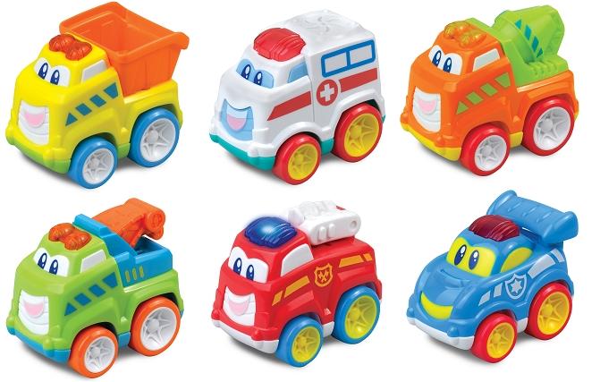 Poznaj roześmianą paczkę przyjaciół na 4 kółkach! W jej skład wchodzi Betoniarka Benia, Holownik Henio, Karetka Karolcia, Wywrotka Wiesia, Strażak Zbysio i Wyścigówka Wojtuś. Każdy z samochodzików różni się wyglądem i charakterem, ale najlepiej bawią się, gdy są w komplecie. Zbierz całą kolekcję uśmiechniętych autek i pozwól im się zmierzyć w emocjonującym wyścigu!