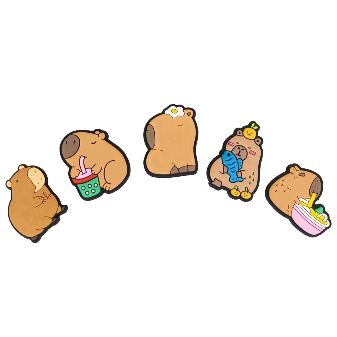 Przypinki do butów - kapibara to zestaw 5 zabawnych pinów, które pozwolą w prosty sposób odmienić wygląd obuwia typu Crocs i podobnych modeli z otworami. Urocze kapibary w różnych, humorystycznych odsłonach dodają butom charakteru i sprawiają, że stylizacja staje się wyjątkowa. To szybki sposób na personalizację obuwia oraz wyrażenie własnego stylu. Idealne na lato, wakacje i codzienne stylizacje dziecięce.