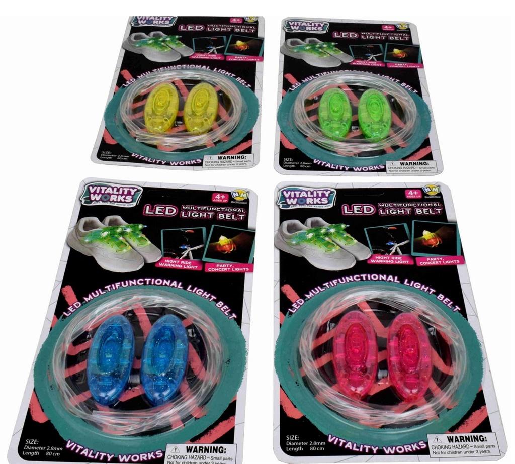 LED sznurówki w zestawie świecąca przypinka oraz przezroczyste sznurowadło. Baterie załączono do zestawu. 13 x 23 x 2 cm