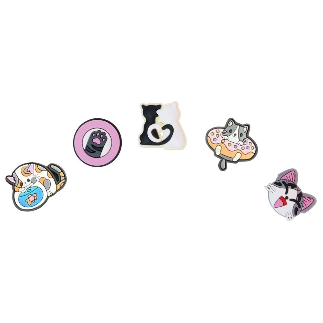 Przypinki do butów - zabawne kotki to uroczy zestaw 5 pinów, które pozwolą w prosty sposób nadać obuwiu wyjątkowy, kreatywny charakter. Kolorowe grafiki z motywem śmiesznych kotków doskonale sprawdzą się jako dekoracja butów typu Crocs i innych modeli z otworami. To szybki sposób na personalizację obuwia i stworzenie własnej, niepowtarzalnej stylizacji. Idealne dla dzieci i miłośników zwierząt.
