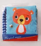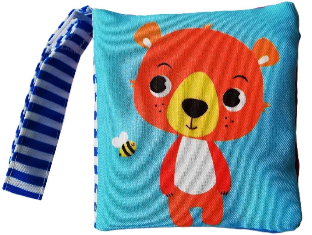 Seria obrazkowych książeczek dla najmłodszych dzieci, wykonanych z tkaniny. Piękne, kolorowe ilustracje zwierzątek zachęcą dzieci do poznawania otaczającego je świata. Ostatnia strona ksiażeczki ma wbudowaną wewnątrz szeleszczącą folię. Każda książeczka wyposażona jest w paseczek z rzepem, który umożliwi rodzicowi przyczepienie książeczki do wózeczka, by dziecko zawsze mogło ją mieć ze sobą. Książeczki zapakowane w filową torebkę z headerem z eurodziurką zapinaną na nap .