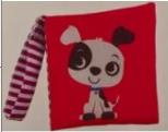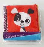 Seria obrazkowych książeczek dla najmłodszych dzieci, wykonanych z tkaniny. Piękne, kolorowe ilustracje zwierzątek zachęcą dzieci do poznawania otaczającego je świata. Ostatnia strona ksiażeczki ma wbudowaną wewnątrz szeleszczącą folię. Każda książeczka wyposażona jest w paseczek z rzepem, który umożliwi rodzicowi przyczepienie książeczki do wózeczka, by dziecko zawsze mogło ją mieć ze sobą. Książeczki zapakowane w filową torebkę z headerem z eurodziurką zapinaną na nap .