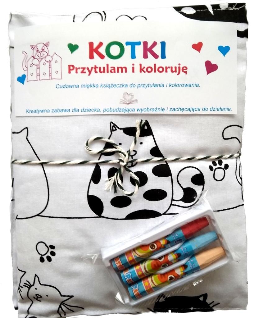 Cudowna mięciutka książeczka dla maluszka z przyjaznej bawełny, sensoryczno-manualna. Do dotykania, przytulania, oglądania i kolorowania. Zawiązywana na sznureczek. W przyjaznej dziecku kolorystyce z kontrastowymi elementami czerni i bieli. Książeczkę można pięknie pokolorować przy pomocy dołączonych pasteli. Książeczki materiałowe kontrastowe rozwijają wyobraźnię, dostarczają bodźców, pobudzają zmysły malucha i stymulują jego rozwój.