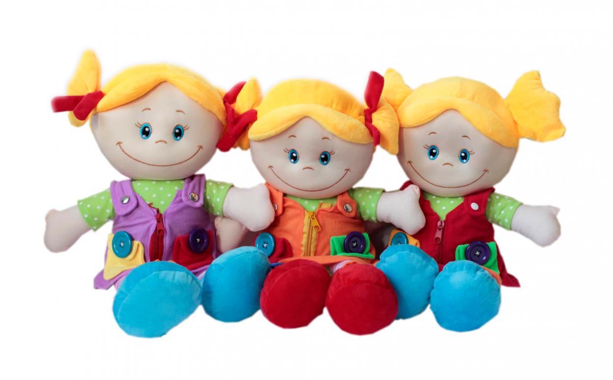 Dzięki tej przemiłej lali, dziecko szybciej nauczy się samodzielnie ubierać. Elementy stroju są zróżnicowane sensorycznie - stymulacja wzrokowo-dotykowa. Ćwiczenie małej motoryki: suwak, guzik, kieszonki, oryginalne buty ze sznurówkami i rzepem
