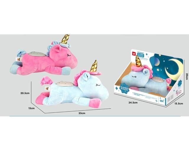 Przytulanka dla maluszka - śpiący jednorożec. Przytulanka posiada projektor gwiazd, który rozbudzi ciekawość najmłodszych.
