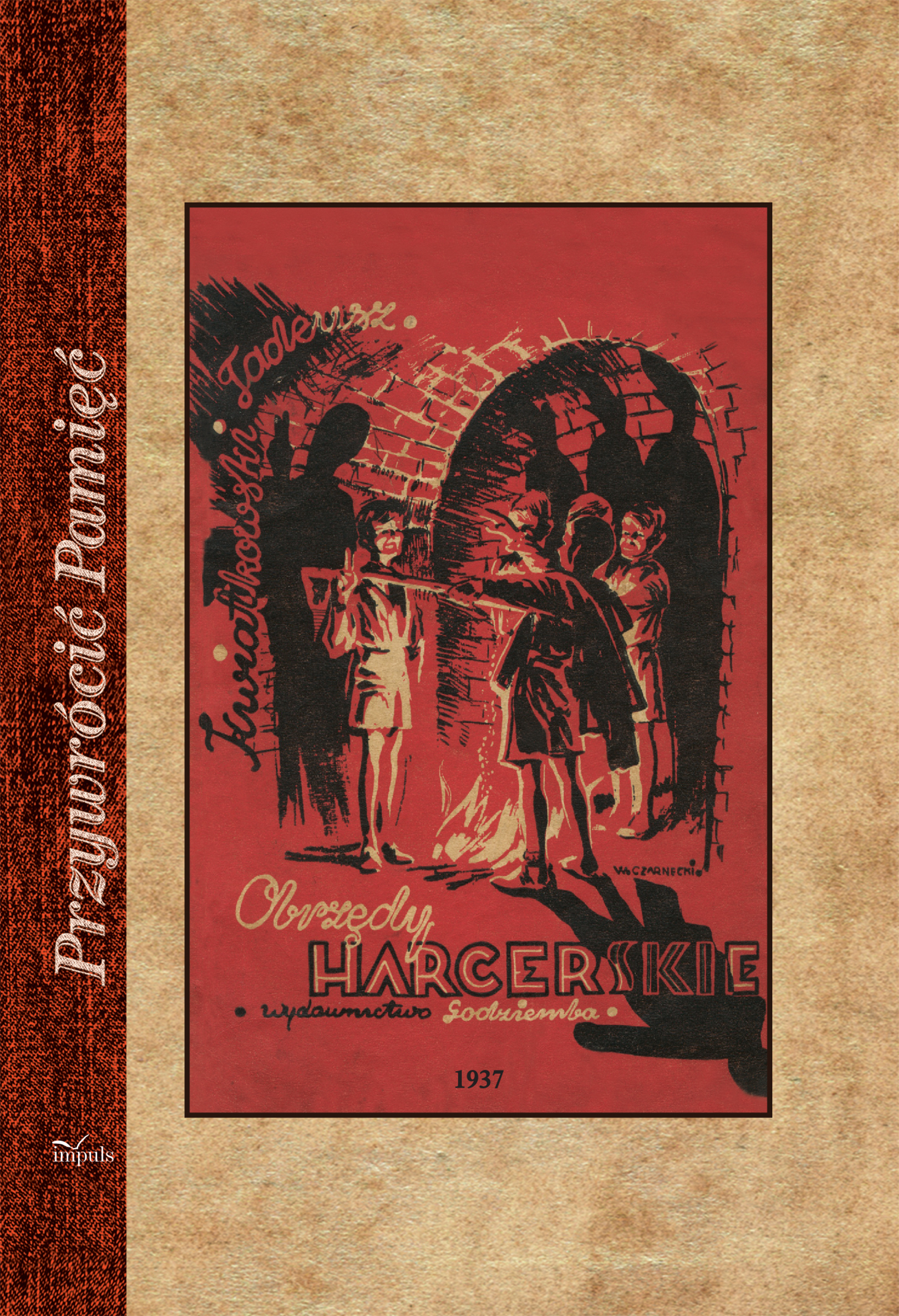 Seria wydawnicza „Przywrócić Pamięć” ma przybliżyć współczesnemu społeczeństwu publikacje założycieli ruchu skautowego, twórców rozwoju idei i metodyki harcerskiej z lat 1911–1946. Reprint z 1937 r. "Obrzędy harcerskie". O kucharzu, duchachi dobijaniu na „sucho“ przeciwnika Młodzi wodzowie! Czyście widzieli kiedy obóz, w którym trzydziestu bęcwałów wałkoni się z dnia na dzień? Pędzi się ich nierozumną „wojskówką“, przerabiając te ćwiczenia, które najbardziej odpowiadają drużynowemu, jako „najwspanialsza praca wychowawcza Harcerstwa“. Wchodząc już do obozu, wyczuwa się tę stęchłą, skisłą atmosferę wspólnej niechęci i ciągłego pokrzykiwania ważnych. Brud po namiotach, ślady jedzenia i szorowania garnków na mundurach chłopców. Myślicie, że to nieprawda? A jednak zdarzają się jeszcze, wprawdzie coraz rzadziej, takie obozy, sam bowiem widziałem podobny. Całe szczęście, że tylko w tym obozie byłem przez pół godziny. Nie wytrzymałbym dłużej. Powiesiłbym się, a przedtem samego „wodza“ wysłałbym w paczce zalakowanej do muzeum „osobliwości harcerskich“. Czy ten zarzut możnaby skierować tylko wyłącznie pod adresem obozów harcerskich? Nie. Mamy podobne zbiórki zastępów, drużyny, nawet wykapki. Cóż dziwnego, że chłopcy w niektórych środowiskach „wieją“ z Harcerstwa? Dobrze choć, że podobne wypadki — to wyjątki. „Wojskówka“, ważność drużynowego czy zastępowego — to minusy pracy. Ich się to wystrzegamy i solennie przyrzekamy w czyn nie wprowadzać. W jakiż to sposób przeciwdziałamy powstawaniu podobnych „nieszczęść“ Trzy podstawowe czynniki, harmonijnie zespolone musimy uwzględnić, aby osiągnąć dodatni efekt — dobry plan pracy, zdecydowana postawa wodzowska i obrzęd harcerski oto elementy, które w sumie stwarzają to, co nazwiemy wychowywaniem pełnych i prawdziwych jednostek — harcerzy. Traktując to po kucharsku — zbiórka, obóz, lub wykapka, to pewna ilość kąsków mięsnych lub nawet pieczeni — a obrzęd to sos. Sos, który przepoi swym aromatem całość zbiórki czy wykapki. Obrzęd harcerski — to nasz serdeczny druh. Ileż to razy on właśnie pomógł nam scementować ducha w zastępie, czy w pace zastępowych, ileż to razy pchnęliśmy przy pomocy niego chłopaków na tor głębszych myśli. Ileż to razy uzyskaliśmy atmosferę braterską, szczerą. Pamiętasz Adamie-Cienkoszyjo, jak Ci to Józek-Tarzan dokuczał i wymyślał, aż wreszcie na zbiórce naszej „bandy“ pod Jedyną Sosną obrzęd harcerskiego koła zbratał Was i uczynił z Was serdecznych i prawdziwych przyjaciół? Ileż to razy przez obrzęd harcerski czuliśmy się mocniejszymi i prawdziwszymi braćmi-harcerzami. Wierzę w obrzęd i w to, iż przez swój nastrój i oddziaływanie da on nam wiele sposobności do wyrobienia charakterów chłopięcych. Często tylko nastrój, a mniej rozumowana przemowa, daje możność zapadnięcia wielu decyzjom poświęcenia, zmiany życia, przerobienia swego charakteru i t. d. Obrzęd da nam, wodzom, jedną rzecz nie do pogardzenia. Oto sprowadzi nas, „starych koni“, na drogę harcerskości. Przestaniemy tkwić, jako postumenty fałszu i sztuczności. „Ważność“ naszej rangi zniknie. Zajmie jej miejsce braterskość i stosunek serdeczny względem chłopców. Staniemy się według określenia — Wilka, który nigdy nie śpi — starszymi braćmi. Tak. Wszystko to piękne, cudowne, ale... Ale trzeba pamiętać o tym, że dobry kucharz nie da za dużo sosu i nie przesoli potraw. Fałszywie pojęta obrzędowość w oparciu o formy pozbawione treści stanie się naszym wrogiem, a przy okazji możemy sobie tak ręce poparzyć, iż długi czas minie, nim się wszystko wygoi. Krótko mówiąc — boję się tych obrzędów, które szkodzić mogą zdrowiu psychicznemu chłopców. Obrzędy, posiadające makabryczność są niedopuszczalne do przeprowadzenia ich na naszych zbiórkach. Wszelkiego rodzaju piszczele, czaszki trupie, maski i t. d. to nie dla nas. Dlaczego?