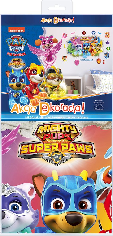 Książki z serii AKCJA DEKORACJA to kolorowe zestawy kreatywne z popularnymi bohaterami. W środku dziecko znajdzie dwa arkusze MEGA naklejek wielokrotnego użytku na ścianę ze swoimi ulubieńcami, które mogą ozdobić jego pokój i wywoływać uśmiech na twarzy! W zestawie także kolorowanka oraz sześć flamastrów - wystarczy, że dziecko pomaluje obrazek, a rysunki nabiorą kolorów.