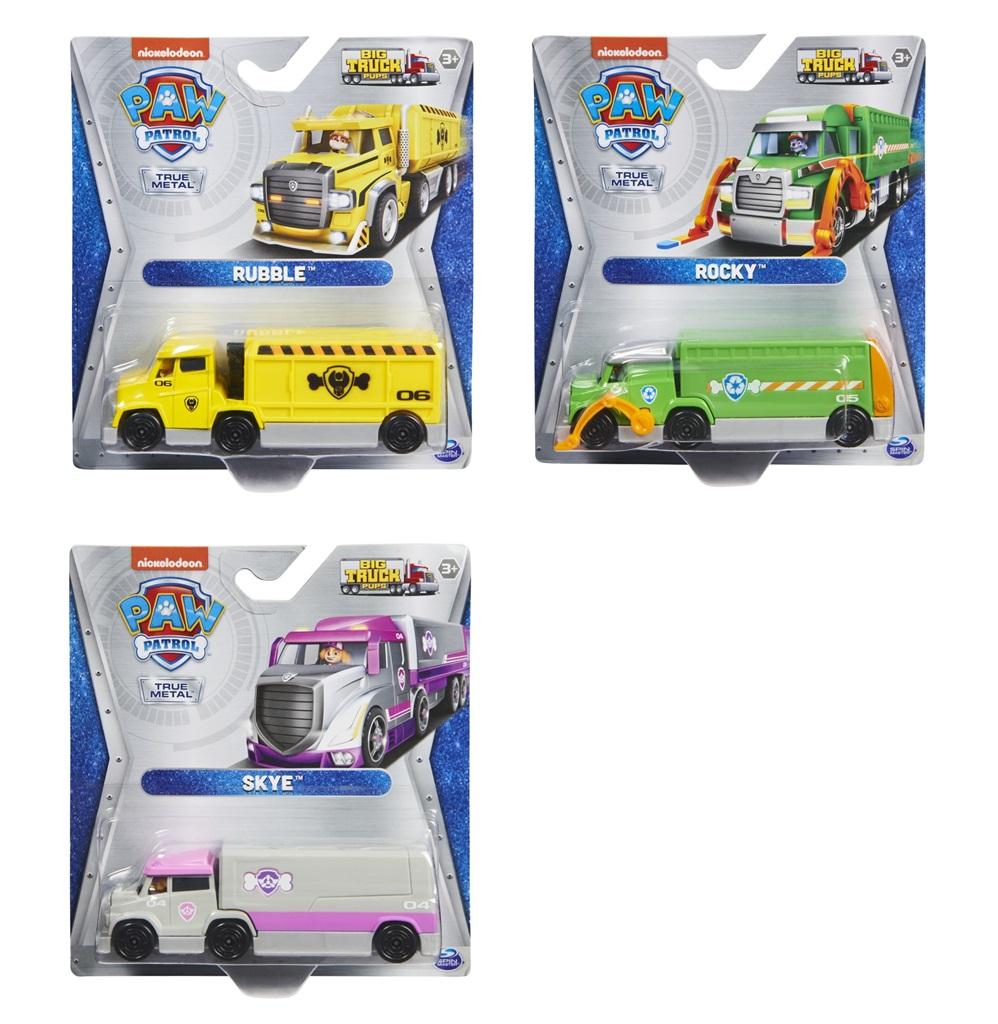 Asortyment ciężarówek True Metal w skali 1:55 z najnowszej serii Big Truck Pups. Za kierownicą każdego z nich, siedzi Twój ulubiony bohater. Pojazdy metalowe idealne do zbierania całej kolekcji!