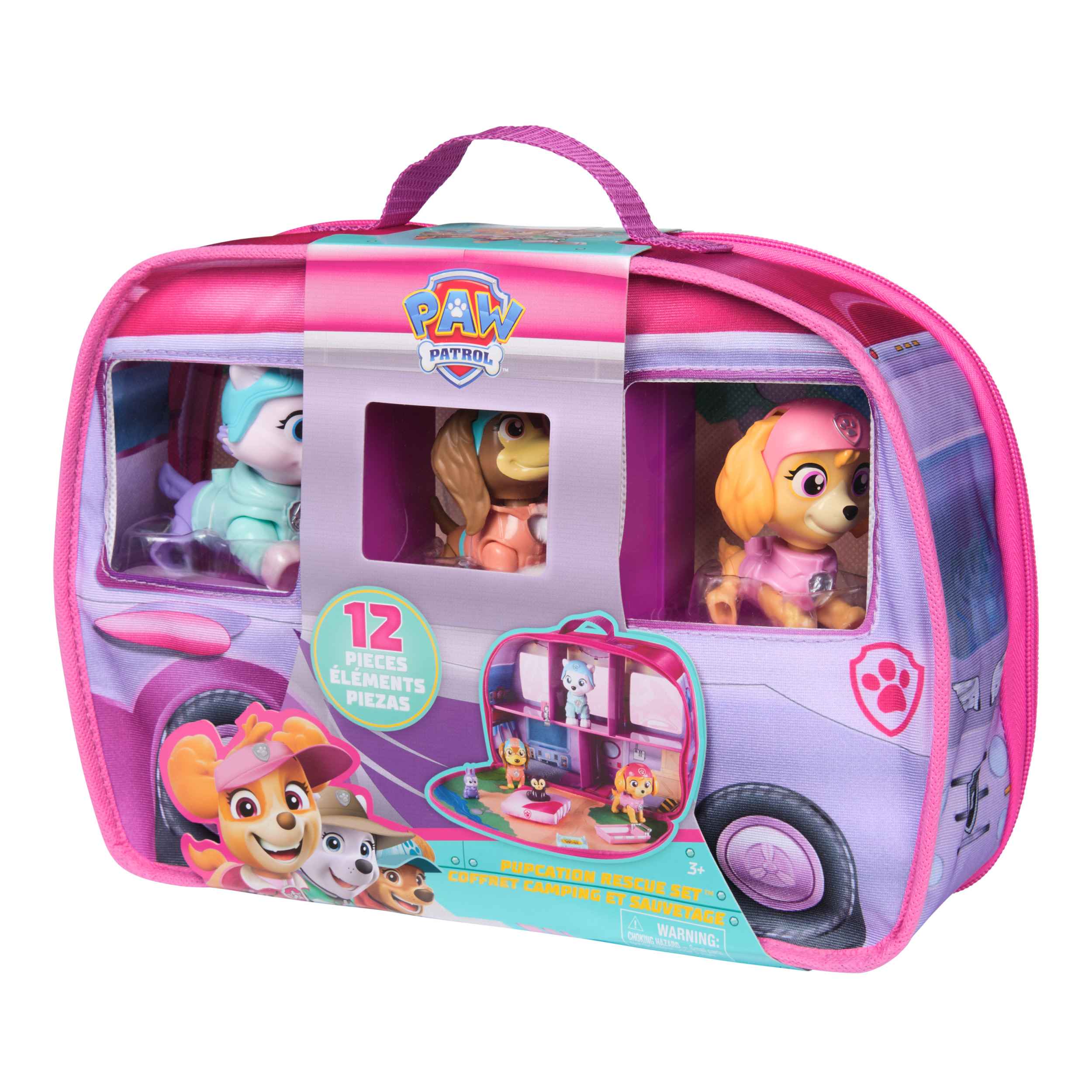 Zestaw zawiera figurki Skye, Liberty i Everest z kiwającymi się głowami i ruchomymi kończynami oraz ich uroczych przyjaciół – misia i króliczka. Wyjątkowy kamper o długości 30 cm otwiera się, odsłaniając pięć pomieszczeń i matę z motywem parku, idealną na pikniki i zabawę.