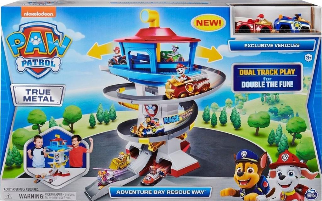 Doświadcz podwójnej zabawy dzięki zestawowi Psi Patrol True Metal z bazą obserwacyjną! Ten ekscytujący zestaw z torem ma dwie ścieżki i może jednocześnie pomieścić aż sześć pojazdów metalowych z serii True Metal w skali 1:55! Dodatkowo, zestaw zawiera dwa metalowe pojazdy Chase'a i Marshalla! Dzięki autentycznym detalom, grafice i ruchomym kołom metalowe pojazdy True Metal wyglądają identycznie jak w serialu. Załaduj wszystkich podopiecznych Rydera (inne pojazdy z serii True Metal sprzedawane osobno) na szczyt wieży i razem spieszcie na ratunek. Pchnij peryskop, uruchom pojazdy i ugaś ogień buchający na dole wieży! Pojazdy mogą zjeżdzać z wieży po aktywacji podwójnych wyrzutni lub prosto po rampie po przyciśnięciu przełącznika! Aby zabawa była jeszcze bardziej ekscytująca, powiększ swoją kolekcję o wszystkie pojazdy z tej serii. Dzięki zestawowi Psi Patrol True Metal Baza Obserwacyjna jeszcze szybciej wyruszysz w misje ratunkowe. Zestaw idealnie sprawdzi się jako prezent dla małych fanów Psiego Patrolu od 3 roku życia. Przy montażu konieczna pomoc osoby dorosłej. Zestaw zawiera: Bazę z torami, 1 pojazd Marshalla z serii True Metal, 1 pojazd Chase'a z serii True Metal, 1 instrukcję użytkowania.