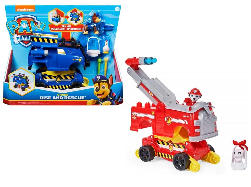 Ruszaj na ratunek z Marshallem z Psiego Patrolu i jego pojazdem Rise and Rescue! Wóz strażacki Marshalla ma autentyczne grafiki i detale, schowek na akcesoria i escytującą transfromację. Kiedy nadejdzie czas, umieść figurkę Marshalla w fotelu kierowcy i ruszaj na na ekscytujacą misję ratunkową! Po przybyciu naciśnij pojazd, aby przejść w tryb ratunkowy - pojazd unosi się, ujawniają się wyrzutnie pocisków i dron ratunkowy. Jednocześnie Marshall zyskuje doskonały punkt obserwacyjny na czas akcji! Wystrzel pociski wodne, aby usunąć przeszkody. W przypadku misji ratowniczych w trudno dostępnych miejsach, otwórz schowek z tyłu pojazdu i wyślij drona ratunkowego Chase'a oraz kosz ratunkowy, aby przetransportować Chickalettę (figurka w zestawie) w bezpieczne miejsce! Gdy Chickaletta zostanie uratowana, zaczep kosz z przodu pojazdu, aby zapewnić jej bezpieczeństwo w drodze powrotnej do domu. Użyj wyobraźni, aby przywołać do życia swoje pełne akcji misje ratunkowe. Aby zabawa była jeszcze lepsza, poszukaj pojazdu Chase'a Rise and Rescue (sprzedawany oddzielnie). Zabawki Rise and Rescue są wspaniałymi prezentami dla dzieci od lat 3. Połącz siły ze swoimi ulubionym szczeniakiem z Psiego Patrolu, Marshallem i uratuj sytuację dzięki pojazdowi Rise and Rescue!