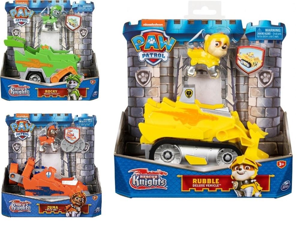 Połącz siły z Chase'm i weź udział w ekscytujących misjach z jego pojazdem delux w wersji Psi Patrol Odważni Rycerze. Pojazd Chase'a posiada detale i stylizację inspirowaną smokami oraz ekscytującą transformację narzędzi ratunkowych. Ubrany w zbroję Odważnych Rycerzy Chase (w zestawie figurka kolekcjonerska) jest gotowy, aby uratować sytuację w Barkinburg. Gdy przyjaciel smok ma kłopoty, posadź Chase'a za kierownicą i ruszaj na ratunek. Naciśnij spojler, a z tyły wyskoczy wyrzutnia. Załaduj pociski (dwa w zestawie) i naciśnij przycisk, aby wystrzelić! Wykorzystaj swoją wyobraźnię, aby tworzyć niesamowite, średniowieczne akcje ratunkowe. Dokładnie takie jak z serialu telewizyjnego. Aby bawić się jeszcze lepiej, zbierz zestaw z zamkiem oraz wszystkie pojazdy delux Psiego Patrolu w wersji Odważni Rycerze (zestaw i pojazdy sprzedawane osobno). Przygotuj się na misje ratunkowe z Chase'm i jego pojazdem delux z serii Odważni Rycerze!
