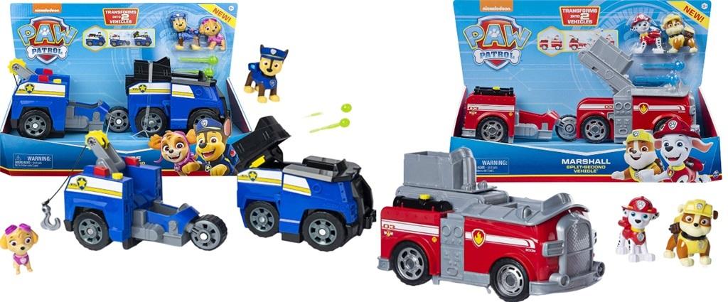 Podwój swoją moc z zestawem Split-Second Vehicle. Ten niezwykły pojazd zmienia swój kształt w zależności od potrzeby. Wystarczy wcisnąć guzik! Załaduj na pokład Chase i Skye (figurki w zestawie) i mknij na pomoc swoim przyjaciołom. Kiedy zajdzie potrzeba, pojazd dzieli się na super szybki pojazd pościgowy i drugi ze specjalnym hakiem holowniczym. Ścigacz wyposażony jest nawet w miotacz pocisków. Posadź każdego z psów za kierownicą i połącz siły w ściganiu przestępców. By unieruchomić ich pociskami, wystarczy ścisnąć boki pojazdu, a lufy dadzą złoczyńcy popalić. Nie zapomnij wysunąć haka holowniczego! Z tym zestawem czekają cię godziny świetnej zabawy I nowych przygód. A jeśli tego ci mało, dołącz do swojej ekipy Marshalla i jego pojazd Split-Second (sprzedawany oddzielnie). Pamiętaj; wystarczy wcisnąć przycisk by uwolnić super szybki policyjny ścigacz i jeżdżący an 3 kołach pojazd ratunkowy. Świetna zabawa dla dzieci od 3 roku życia. Zestaw zawiera Includes: 1 pojazd Split-Second Vehicle (rozdziela się na 2), 2 figurki, 2 miotacze pocisków, instrukcję obsługi