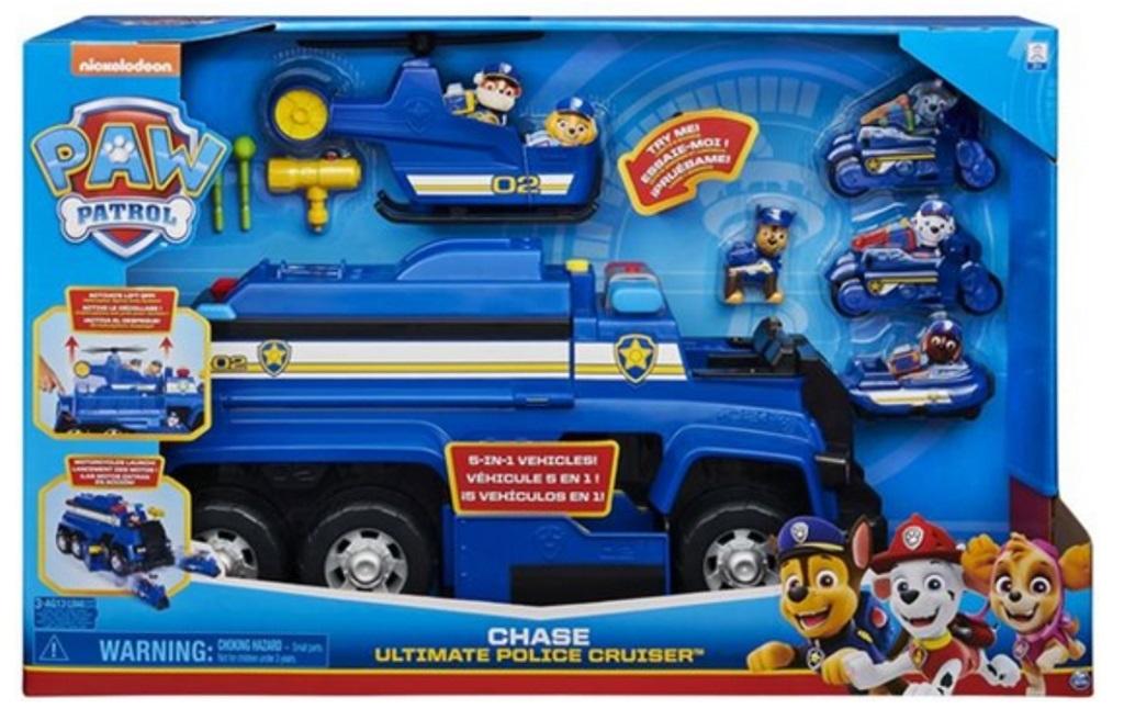 Czy pod osłoną nocy czy w świetle dnia, Psi Patrol zawsze służy pomocą! Tym razem na ratunek wyrusz radiowozem Chase'a 5w1. Ten ogromny pojazd policyjny, wyposażony w migające światła i efekty dźwiękowe łączy w sobie radiowóz, dwa motocykle, łódź i helikopter! Pojazd Chase'a jest gotowy wyruszyć na misje ratunkowe w każdych warunkach bojowych! Załaduj Chase'a (figurka w zestawie) i resztę piesków (sprzedawane osobno) do pojazdu i przygotuj się na prawdziwą przygodę. Z fotela kierowcy Chase ma nie tylko idealny punkt obserwacyjny do wykrywania problemów, ale i wystrzeliwania pocisków. Na górze pojazdu znajduje się przycisk, który automatycznie uruchamia dwa motocykle znajdujące się po bokach radiowozu. Dzięki nim pieski jeszcze szybciej dotrą na ratunek! A może akcja wymaga pomocy z powietrza? Nie ma sprawy! Aby na misję wysłać wsparcie z powietrza, wystarczy naciśnąć przycisk z tyłu krążownika! Górna część radiowozu otwiera się, aktywując odłączenie helikoptera. Dzięki Radiowozowi Chase'a 5w1 możesz bez końca odgrywać swoje ulubione akcje ratunkowe z serialu! Każdy fan Psiego Patrolu musi mieć w swojej kolekcji ten pojazd! Zestaw świetnie sprawdzi się na prezent. Zawiera: 1 figurkę Chase'a, 5 pojazdów, 1 wyrzutnię pocisków, 3 pociski, 1 instrukcję użytkowania.