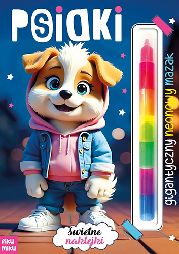 Okładka książki Psiaki. Gigantyczny neonowy mazak. Marker modułowy