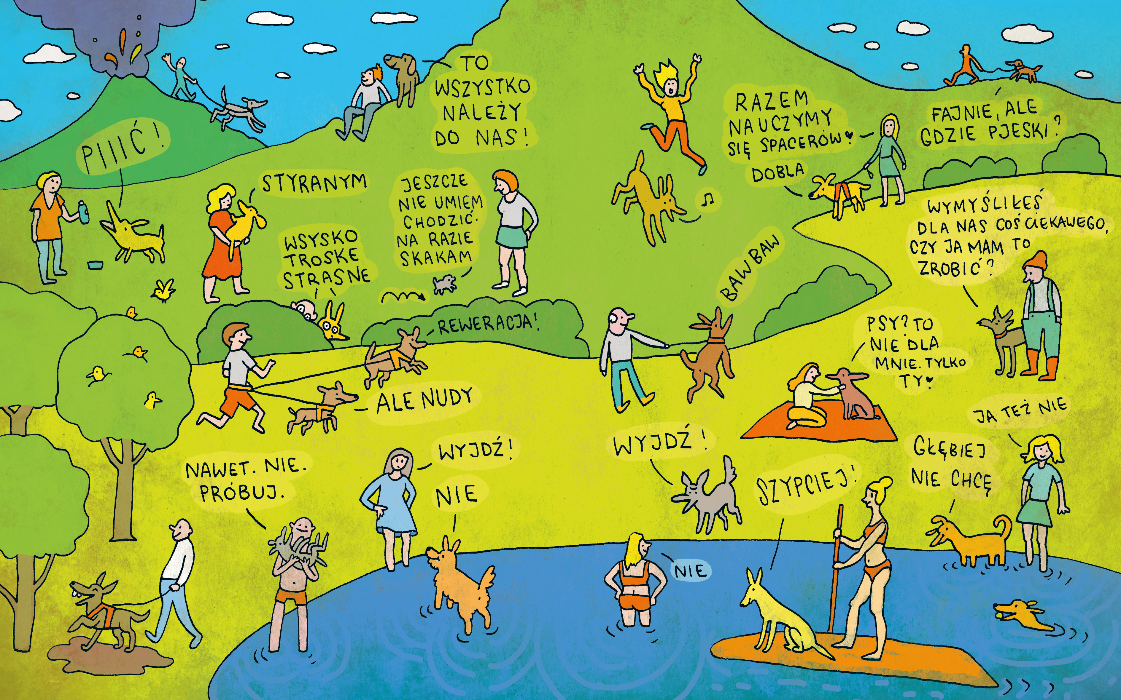 To jest spacerowy przytrafialnik, czyli książka, w której możecie zobaczyć, jak przedziwne i prześmieszne rzeczy przytrafiają się psio-ludzkim tandemom.