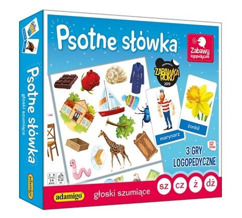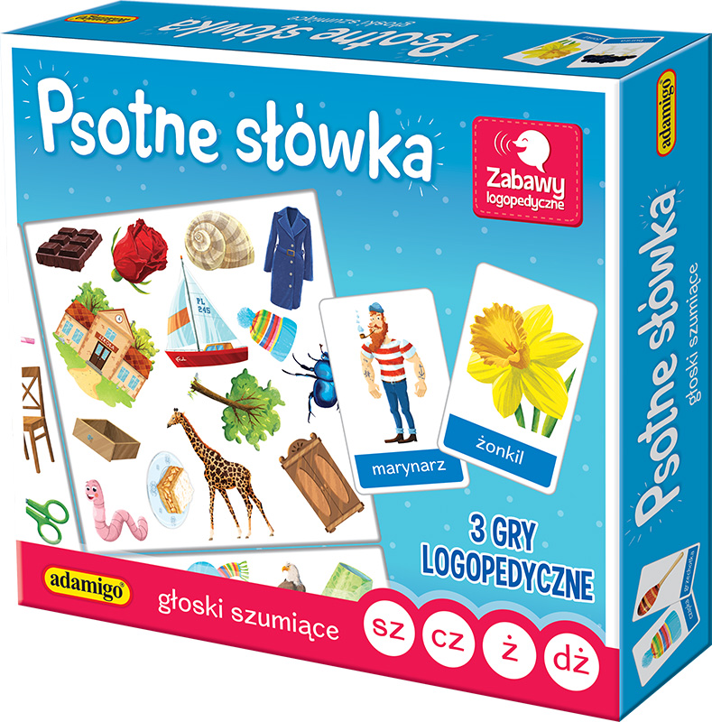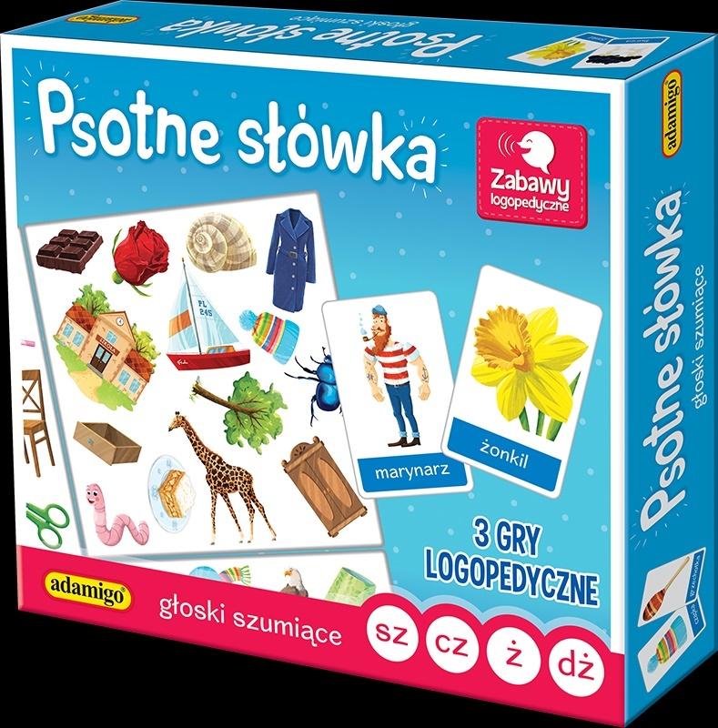Seria gier PSOTNE SŁÓWKA przeznaczona jest dla wszystkich, którzy chcą doskonalić prawidłową wymowę trudnych głosek. Psotne polskie słowa często sprawiają najmłodszym wiele trudności. Dzięki grze ćwiczenia logopedyczne staną się przyjemnością.