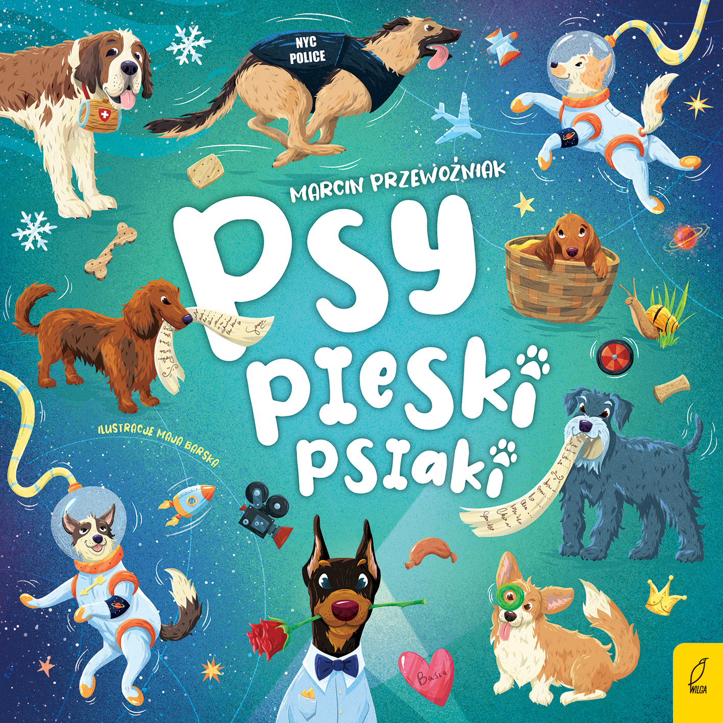 Psy, pieski, psiaki to zbiór opowiadań przywołujących historie wspaniałych czworonogów. Wśród bohaterów książki znalazły się: Pops i Max, którym prawie-prawie udało się wykonać powierzoną im misję; jamnik smutasek, który spotyka na swojej drodze wspaniałych ludzi i dzięki nim w końcu zaczyna biegać, no i się uśmiechać; bohaterscy Apollo i Sirius, którzy w bardzo trudnym momencie historii pomogli wielu osobom; gałgan Uszaty, który oprócz tego, że często broi, uratował także koronę królowej; dzielny Barry, który w zimnych wysokich górach wspierał ludzi w ich podróży; Biełka i Striełka, które odwiedziły kumpli w kosmosie; Puk, pies, który był gwiazdą kina. Mimo że w książce znalazły się historie tylko kilku psiaków, jedno jest pewne: każdy psiak jest wyjątkowy. Autorem książki jest Marcin Przewoźniak, laureat Ogólnopolskiej Nagrody Literackiej im. Kornela Makuszyńskiego.