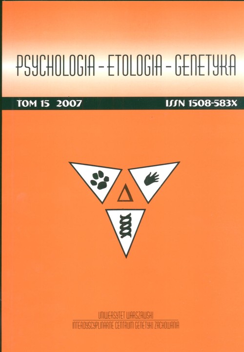 Opakowanie Psychologia etologia genetyka Tom 15/2007