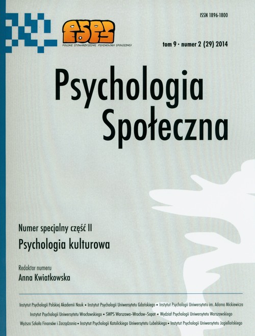 Psychologia społeczna Tom 9 Numer 2 (29) 2014