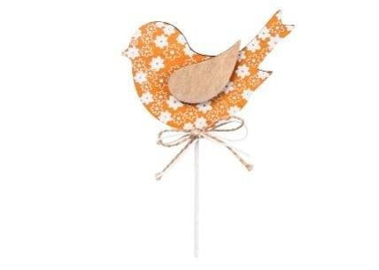 Ptak na piku drewniany 31x11cm pomarańczowy