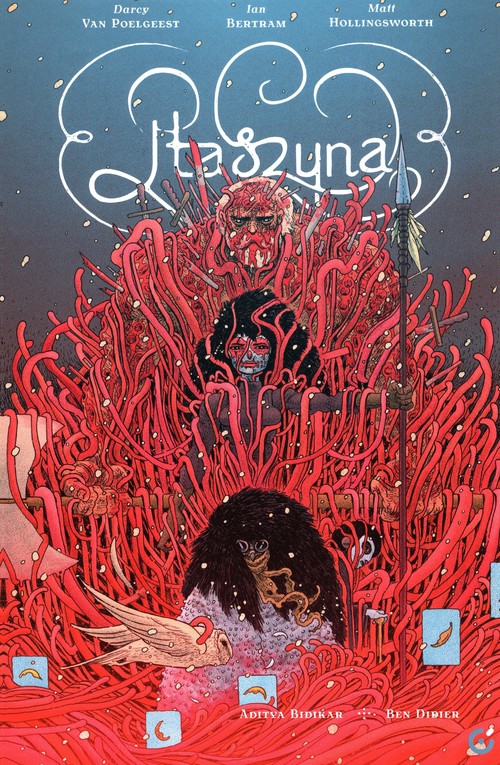 Ptaszyna to uznana przez krytyków opowieść sci-fi stworzona przez wielokrotnie nagradzany zespół pisarza/filmowca Darcy'ego Van Poelgeesta i artysty Iana Bertrama.   Urodzona w czasie niekończącej się wojny między opresyjnym Amerykańskim Imperium a słabnącym ruchem oporu, Ptaszyna jest ostatnią nadzieją rebelii. Gdy jej wioska została zniszczona, matka wzięta jako zakładniczka, a kraj leży w gruzach, młoda bojowniczka musi przemierzać dystopijny kanadyjski krajobraz z misją uwolnienia legendarnego Topora i wskrzeszenia ruchu oporu - by ocalić swój kraj, swoich ludzi i odkryć swoją prawdziwą tożsamość w świecie, który płonie.   Książka otrzymała Nagrodę Eisnera 2020 za najlepszą serię limitowaną, była także nominowana do Książki Roku Harvey Awards 2020.   Darcy Van Poelgeest jest wielokrotnie nagradzanym pisarzem i reżyserem, mieszkającym w Vancouver. Jego prace filmowe były wyświetlane na międzynarodowych festiwalach, pokazywane w telewizji, prezentowane w galeriach i stały się bestsellerem iTunes. “Ptaszyna" to jego pierwsza powieść graficzna.   Ian Bertram, absolwent School of Visual Arts, został uznany za najlepszy talent przez Comicbookjesus.com w 2011 roku i znalazł się na krótkiej liście do stypendium 2021 Society of Illustrators. Regularnie publikuje dla INK magazine i pracuje dla DX, Marvela, Dark Horse i Image Comics. Wystawia swoje prace w Nowym Jorku, gdzie mieszka.
