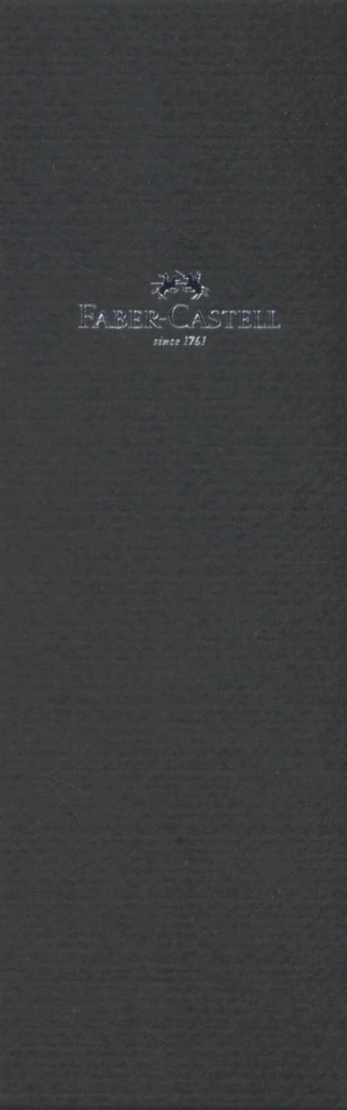 Kartonowe składane pudełeczko na produkty Faber-Castell, z srebrnym logo. Wymiary 65x160x40mm
