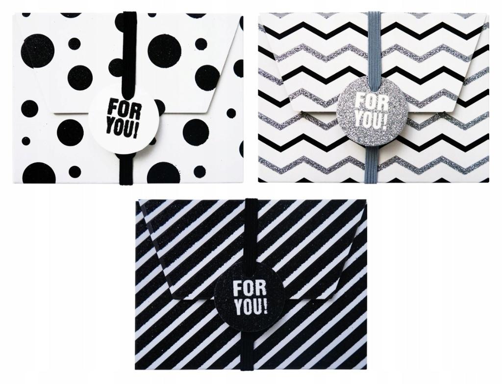 Pudełka na karty podarunkowe biało-czarne 3szt