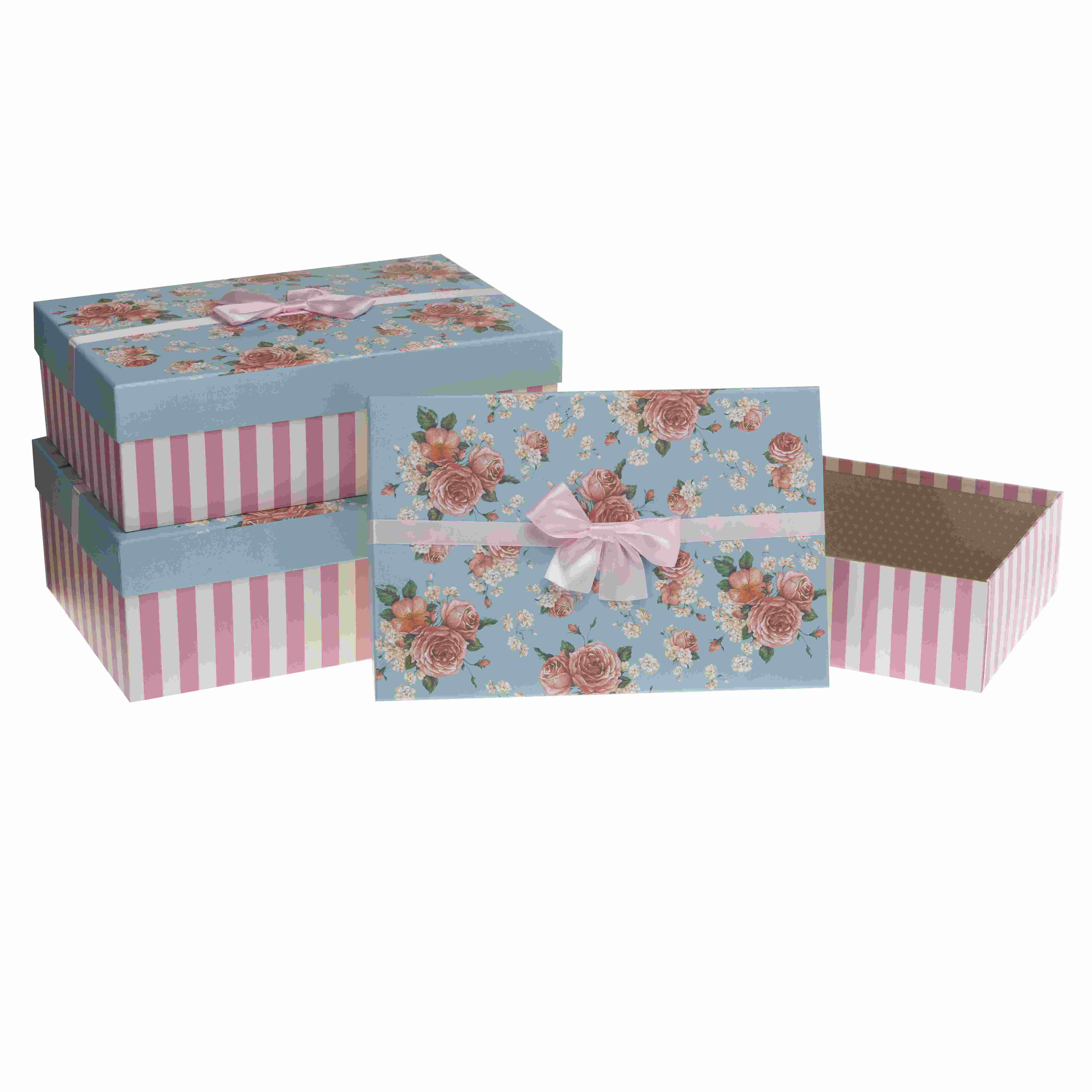 Zestaw Pudełek Ozdobnych, Kształt prostokątny, Wzór kwiatowy/paski,