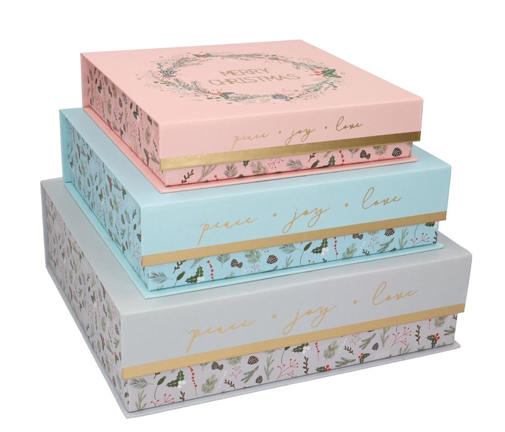 Zestaw 3 pudeĹ,ek kwadratowych: 9x9x10cm + 12,5x12,5x12,5cm + 15,5x15,5x15cm / dekoracja brokatem na wieczku