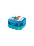 Dzięki swojemu kształtowi jest wygodny i praktyczny w użytkowaniu. W zależności od potrzeb zestaw zmienia swój rozmiar – można używać dwa spiętrowane pojemniki z pokrywą lub tylko jeden – ze snackboxem w środku lub bez. Snackboxy można też używać osobno na mniejsze przekąski, bez pudelka lunchowego. Jeden z pojemników posiada przegródkę, która dzieli go na 2 komory, dając jeszcze więcej możliwości osobnego przechowywania składników posiłku.