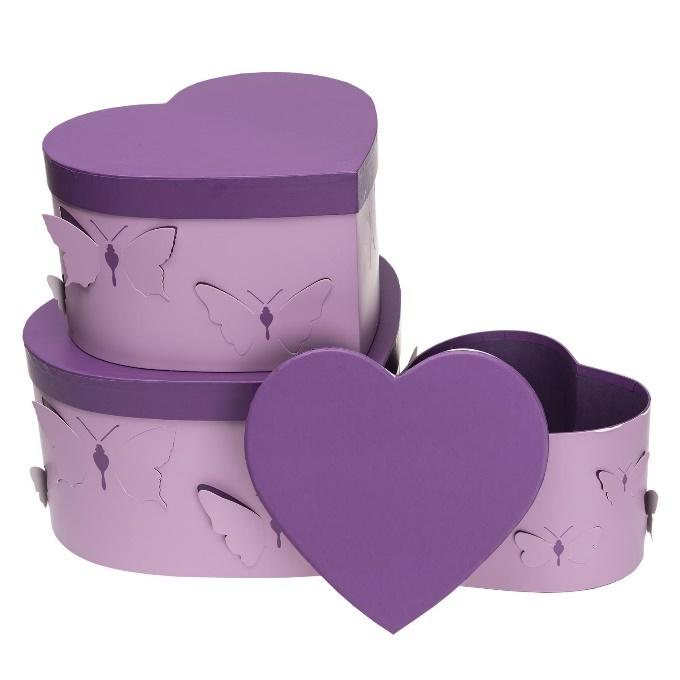Opakowanie Pudełko Flower Box 3szt purpur serce ROZETTE