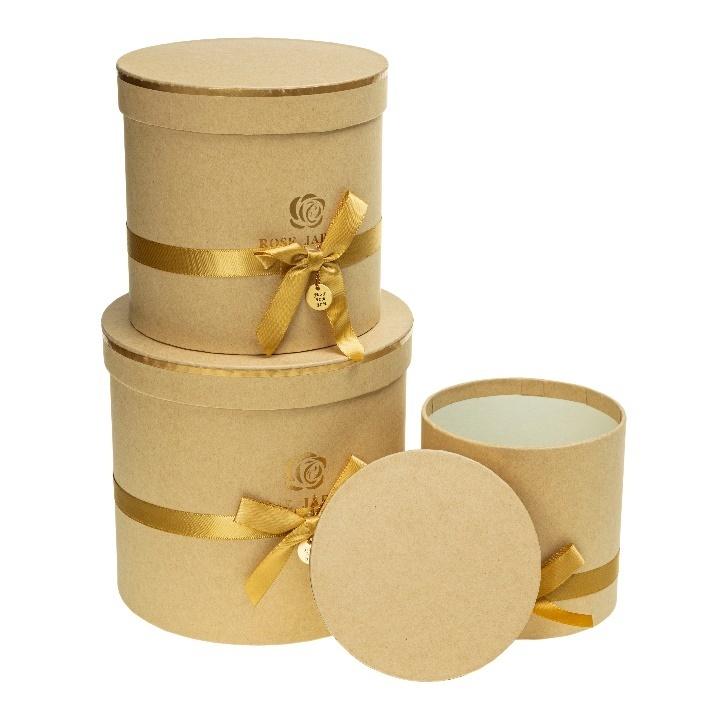 Opakowanie Pudełko Flower Box z kokardą 3szt beżowy ROZETTE