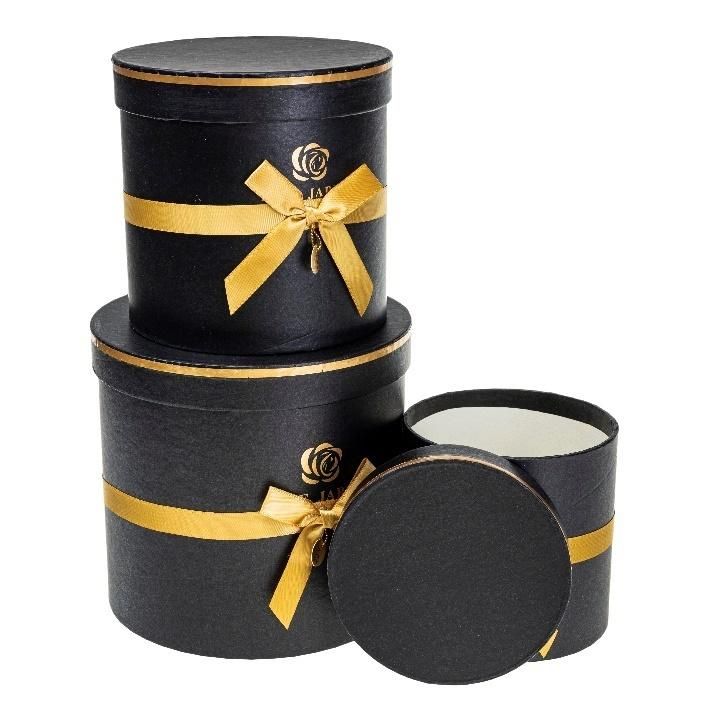 Opakowanie Pudełko Flower Box z kokardą 3szt czarny ROZETTE