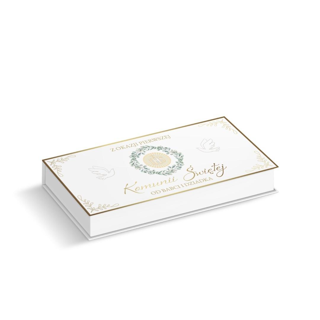 Ozdobne Pudełko PD Pamiątka I KOMUNIA ŚW. - to doskonały sposób na estetyczne i wyjątkowe zapakowanie banknotu lub karty podarunkowej.