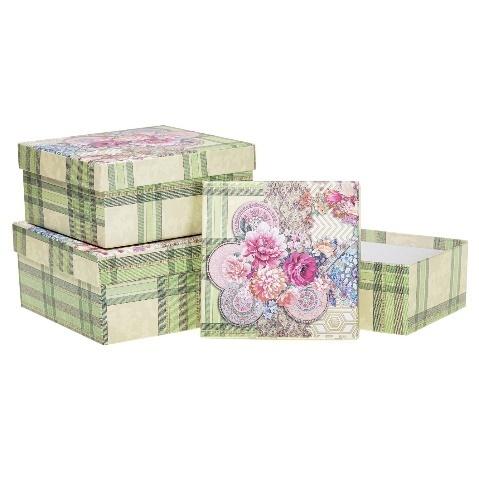 Pudełko kwadrat 3szt kwiaty krata ROZETTE