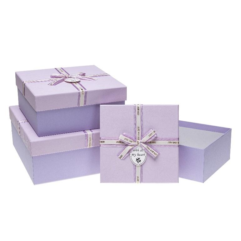 Pudełko kwadrat z kokardą 3szt fiolet ROZETTE