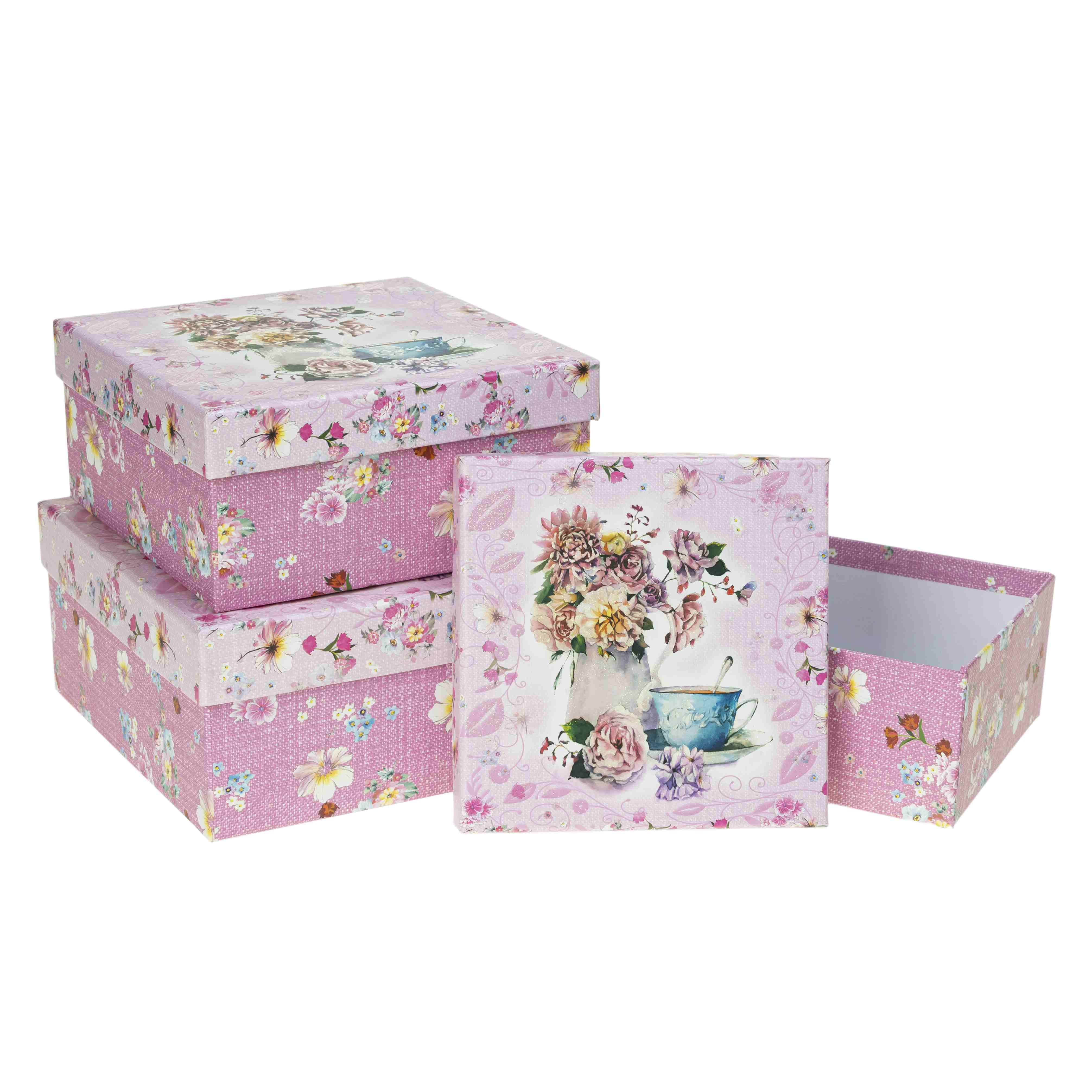 Pudełko kwadrat z kokardą 3szt różowy ROZETTE