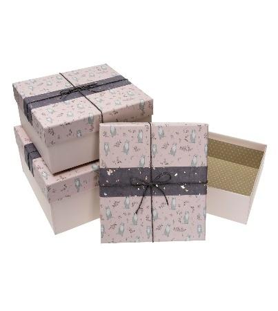Pudełko kwadrat z kokardą 3szt różowy ROZETTE