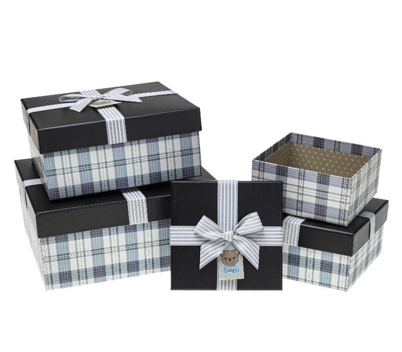 Pudełko kwadrat z kokardą 4szt krata ROZETTE