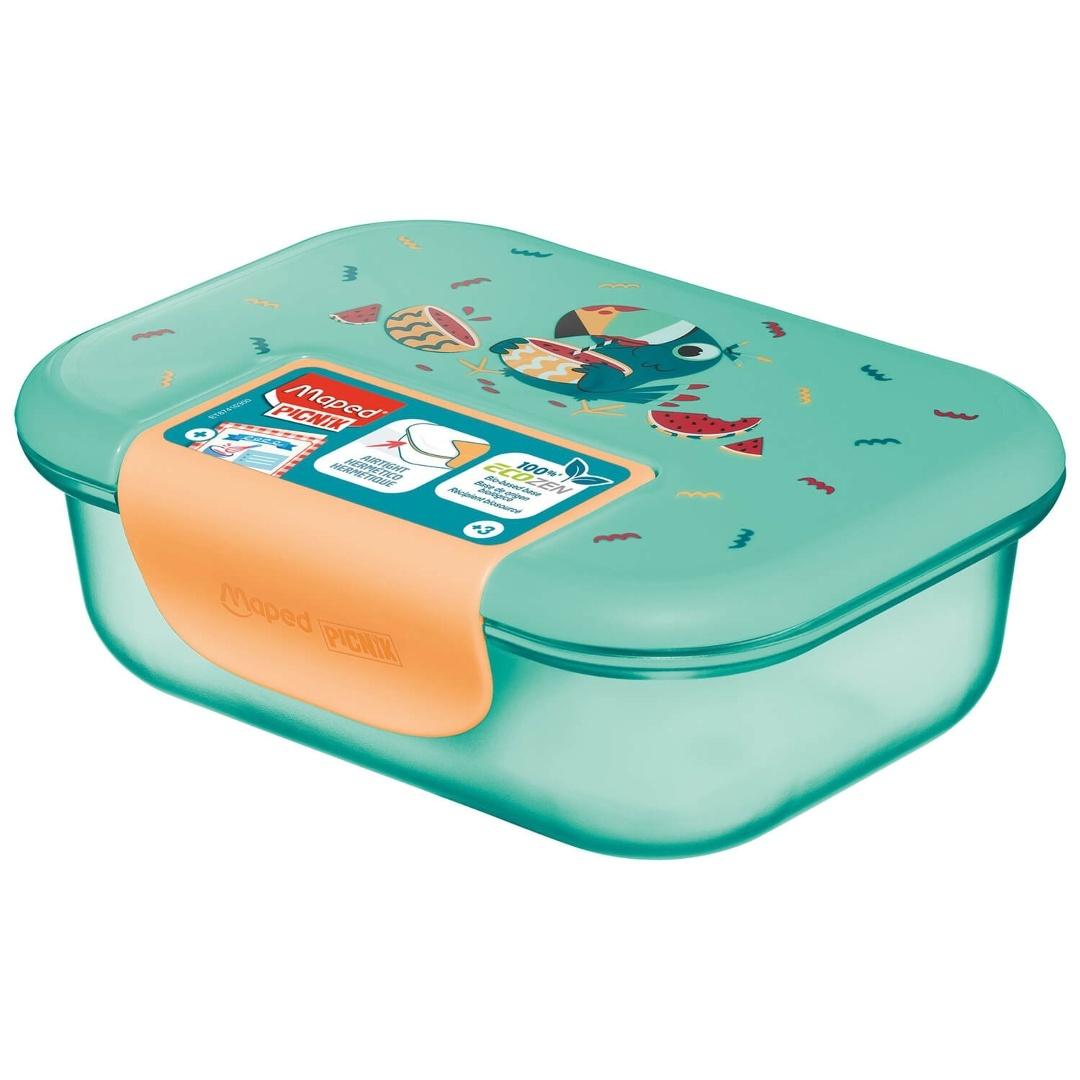 Dzięki swojemu kształtowi to pudełko dla dziecka od 3 roku życia jest wygodne i praktyczne w użytkowaniu. Podstawa pudełka wykonana z Ecozenu, ekologicznego tworzywa bezpiecznego w użytkowaniu, które jest w 100% wykonane z odpadów zbóż takich jak jęczmień, pszenica, kukurydza, owies itp., z doskonałą przejrzystością porównywalną do szkła. Tworzywo jest wytrzymałe, ma bardzo dobrą odporność na upadki i wysoką temperaturę, nie reaguje z jedzeniem i nie wydziela żadnych substancji, nawet pod wpływem ciepła. Oznacza to, że do posiłków nie przedostają się żadne związki chemiczne nawet wtedy, gdy pojemnik jest wystawiony na promienie słoneczne. Bezpieczne, komfortowe zamknięcie pokrywa jest wyposażona w dużą klamrę w kolorze neonowym i silikonową uszczelkę, co gwarantuje szczelność pojemnika. Można myć w zmywarce na górnej półce z otwartą przykrywką. Dostosowany do podgrzewania posiłków w kuchence mikrofalowej z otwartą przykrywką. Pokrywa jest zintegrowana z pojemnikiem, co zapobiega zgubieniu i ułatwia zamykanie. Pojemnik charakteryzuje duża wytrzymałość na uderzenia i stłuczenia. Atrakcyjne kolory i wzory dopasowane do upodobań i gustów dzieci. Pokrywa dekorowana wizerunkiem Tukana. Parametry techniczne: Pojemność 900 ml. Materiał: PP +ABS, wolne od BPA. Pojemnik wykonany z materiału, który nie wchodzi w reakcje z jedzeniem.