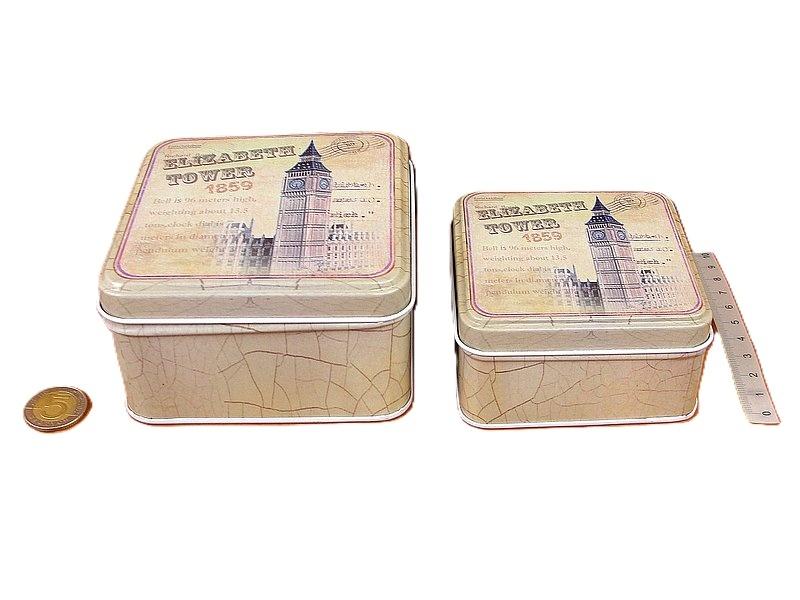 pudełko metalowe, kpl.2szt.; wym.10x6x10/9x4,5x9 cm PPB. .