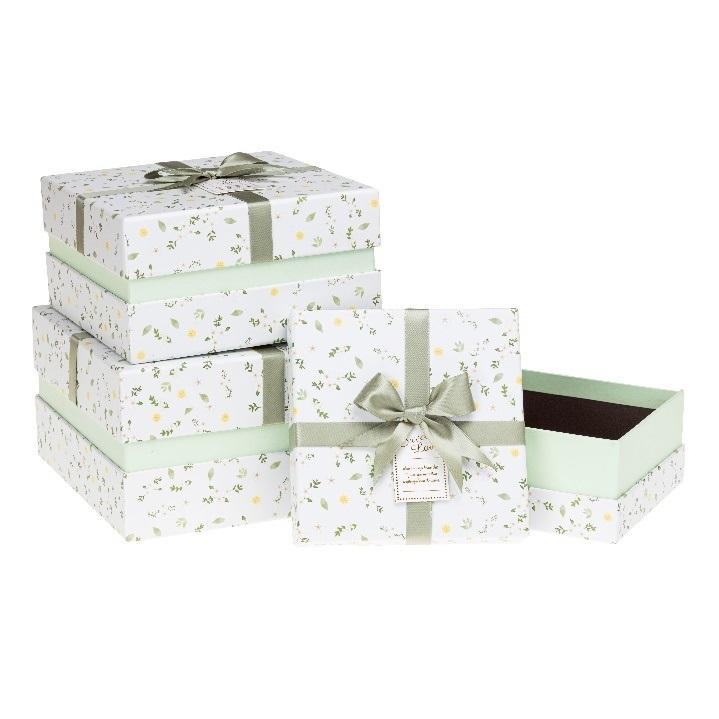 Zestaw pudełek prezentowych 3sz, motyw biało-zielony z drobnymi listkami