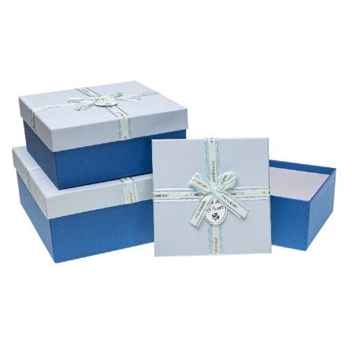 Zestaw pudełek prezentowych kwadratowych 3szt, motyw niebieski