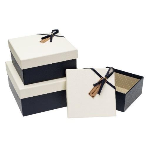 Zestaw pudełek prezentowych kwadratowych 3szt, motyw beżowo-czarny