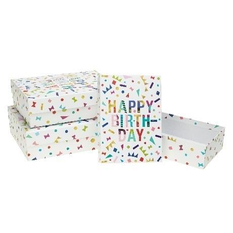 Zestaw pudełek prezentowych 3szt, motyw urodzinowy z napisem Happy Birthday