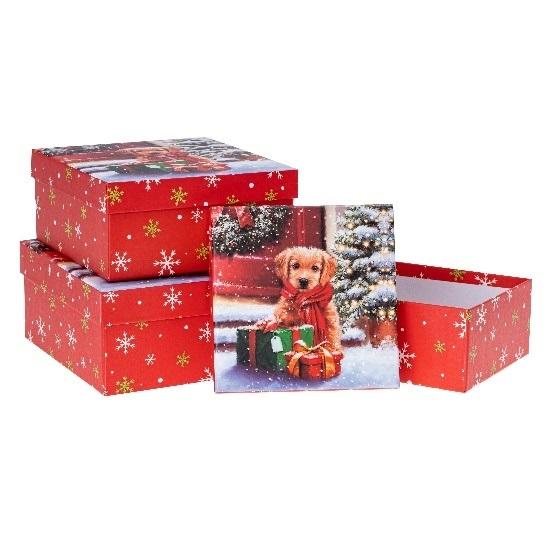 Zestaw pudełek prezentowych 3szt, motyw świąteczny z pieskiem.